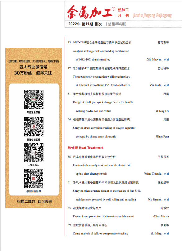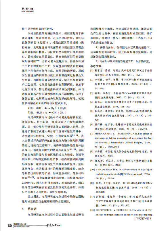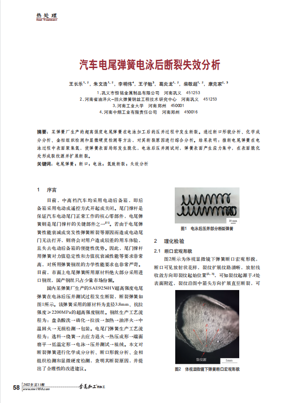 鞏義市恒銘金屬制品有限公司2022年在金屬加工‘熱加工’第11期雜志上發表了一篇名為“汽車電尾彈簧電泳后斷裂失效分析”的論文。